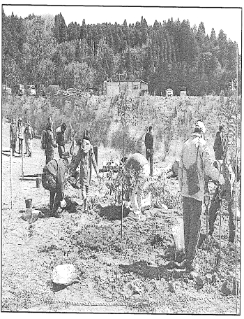 これは、平成20年の植樹祭の様子で17種、600本の苗木を150人で植えたものです。