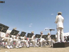 芸人によるお祝い芸の披露に続き、地元の誉田中学校、誉田小学校、誉田東小学校の児童・生徒達による吹奏楽やダンスは、大人顔負けの熱演でした。 また県警吹奏楽隊の演奏も式典に花を添えてくれました。