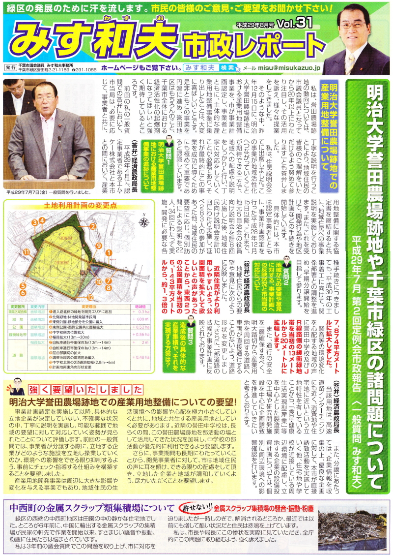 今回も地元に関係する問題を質問しますので大勢の市民の皆様、傍聴においで下さるよう三須和夫よりお願いします。