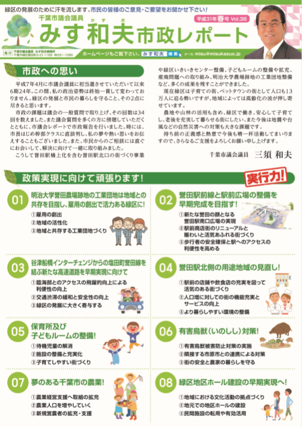 みす和夫が千葉市廃棄物減量等推進審議会会長に選任されました。 |