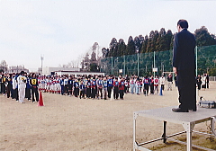 誉田中学校から約3.5kmのコースで行われる第39回目の元旦マラソンが開催されました。参加者326名、昨年より50名も多い参加者が午前10時に集まりました。来賓の挨拶に県議会議員