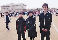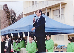 関政幸氏と地元市議会議員 三須和夫氏にお越しいただきました。ラジオ体操をやり身体をほぐしていよいよ326名がスタートしました。今後共に活躍をお祈りします。