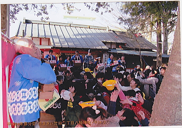 2月3日八幡神社で恒例の節分祭(豆まき)が行われました。