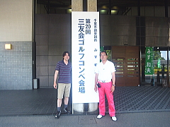 プレーが終わりパーティーが始まり、高山道行会長の挨拶、そして来賓の挨拶、三須議員から皆さんへ感謝の挨拶がありました。今日の最高齢者89歳の酒井さんを讃え先に賞金と賞品を渡し、来年も元気で大会に参加することを約束しました。
