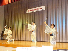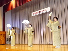 式典には松野博一衆議院議員のお祝いのあいさつを項き、みどり舞踊連盟会長の三須和夫議員より本日の発表会に協力いただいた沢山の皆様に感謝の御礼があり、これからも舞踊を通して沢山の方々と交流を広げて楽しい仲間作りをしながら楽しい人生にしましよう、と挨拶がありました。