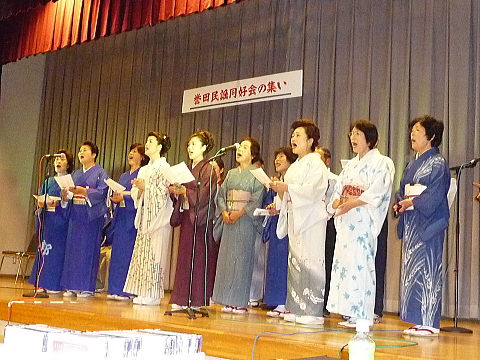 内容は民謡の唄あり、三味線、太鼓、演奏とフラダンス、さらに新舞踊と内容が充実していました。最後まで観客席が満員でした。