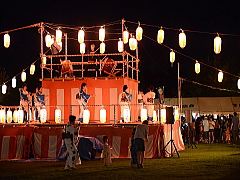 二丁目町内会が主催で行いました。公園内の飾りつけから後片付けまで町内会会長渡辺様はじめ100名近い役員の皆様のお陰で楽しい盆踊りになります。そのほかに、婦人会、商店会、長寿会、民生委員、各種団体の支援を頂きます。