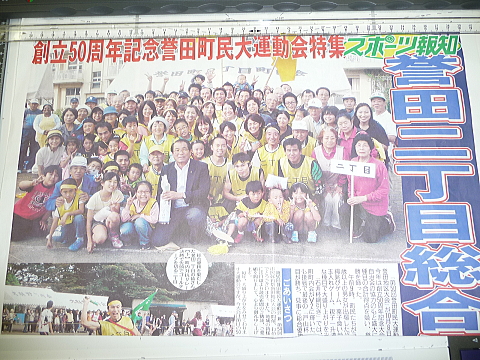 今回も運動会の結果を地域のベストパートナーを目指す読売センターYG誉田さんが町民運動会の様子を新聞の裏表に載せてもらい地元の皆さんも自慢して喜んでいました。今回の運動会にも三須和夫も皆さんと一緒に競技に参加し1日頑張りました。