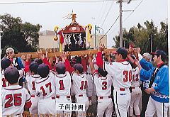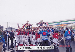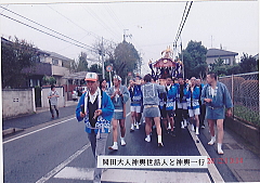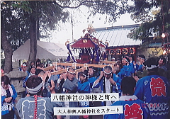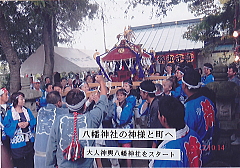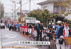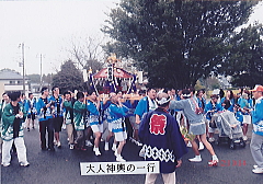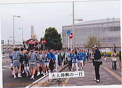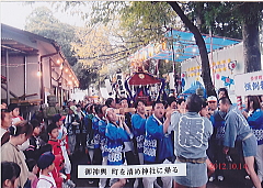 10月14日 神主のお祓いの式典が行われ、その後、子供御輿・今年から大人御輿・お囃子山車が出発しました。朝から小雨が降っていましたが、元気にお御輿が誉田地区をまわりました。